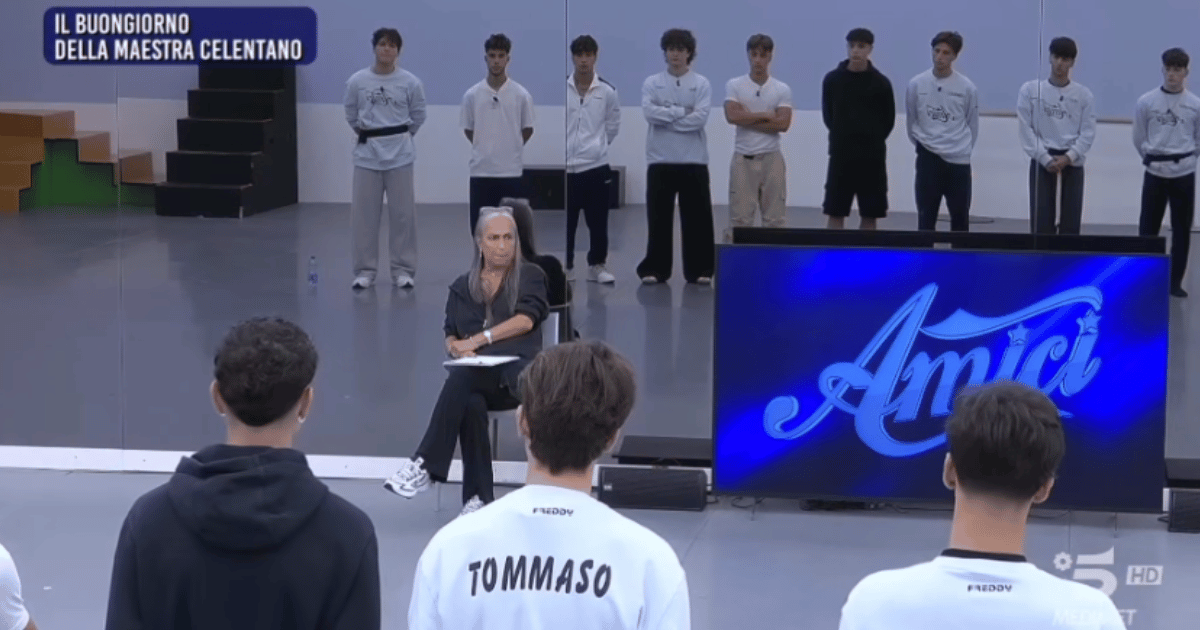 E’ buongiorno della maestra Celentano a svegliare la classe di Amici 25 nel suo primo giorno di scuola. “Fate i letti, e venite in palestra, ma sbrigatevi avete solo 12 minuti”, annuncia Alessandra Celentano mentre aspetta in sala Michele, e gli altri allievi che si sono persi tra le aule della scuola…