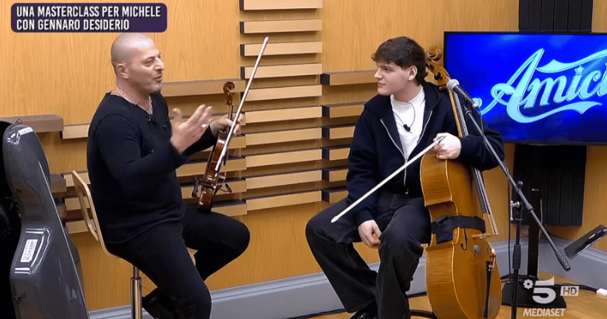 Nella puntata del 15 febbraio 2026 Michele ha conquistato la maglia oro grazie a un’esibizione che lo ha visto cantare e accompagnarsi al violoncello. Così ha ottenuto tre sì determinanti per il passaggio al Serale. Insieme a lui hanno già staccato il pass per la fase finale anche Emiliano, Alex e Angie. Intanto, dalle ultime anticipazioni emerge che pure Gard e Nicola potranno accedere al Serale. Durante la lezione trasmessa nel daytime del 27 febbraio, Michele è stato convocato dai coach per lavorare sulla cover di Tramonti a Nord Est di Elisa. Tuttavia, quello che non sapeva era che, nella sala accanto, lo attendeva una sorpresa. Infatti il violinista Gennaro Desiderio era lì.